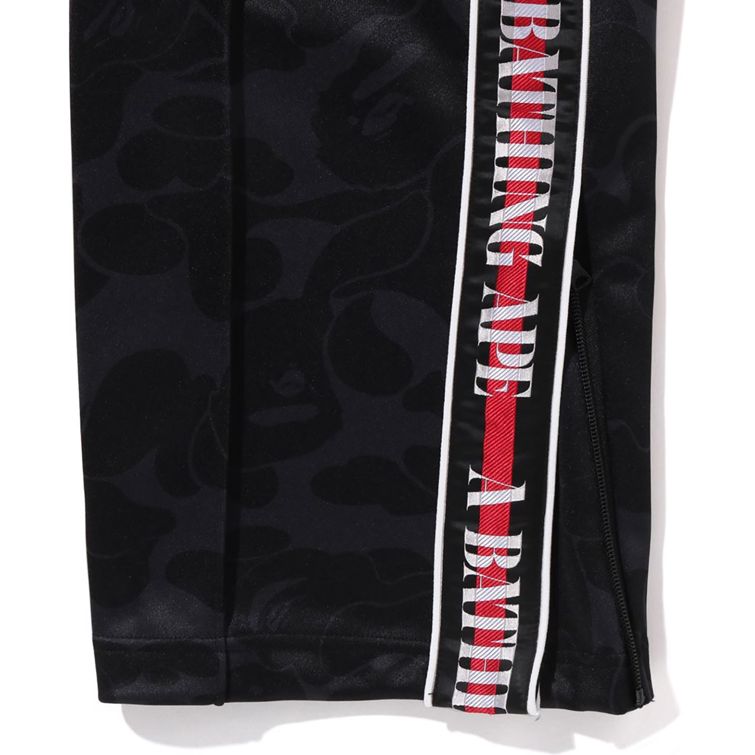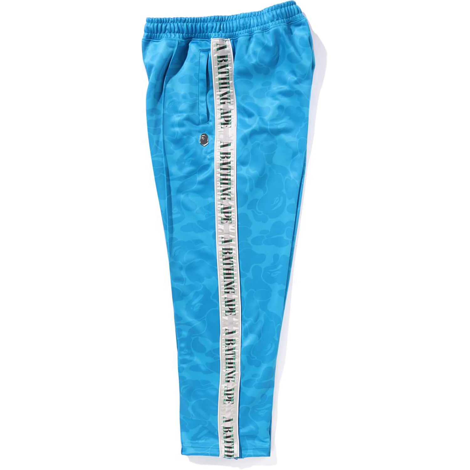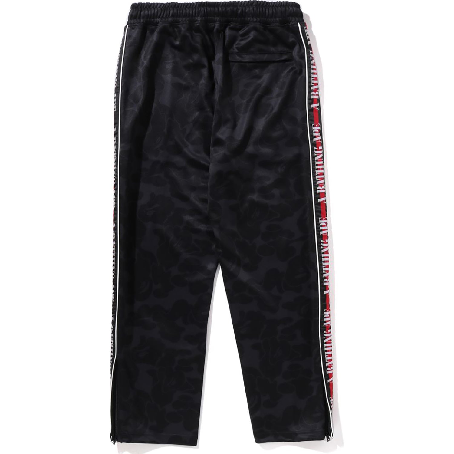 This BAPE MENS SOLID CAMO ONE POINT TRACK PANTS Featuring a solid camo design with the iconic APE Head metal plate and A Bathing Ape logo on the side stripe, these track pants offer an easy-waist fit for comfort. Perfect for pairing as a matching set, they combine style and convenience effortlessly.