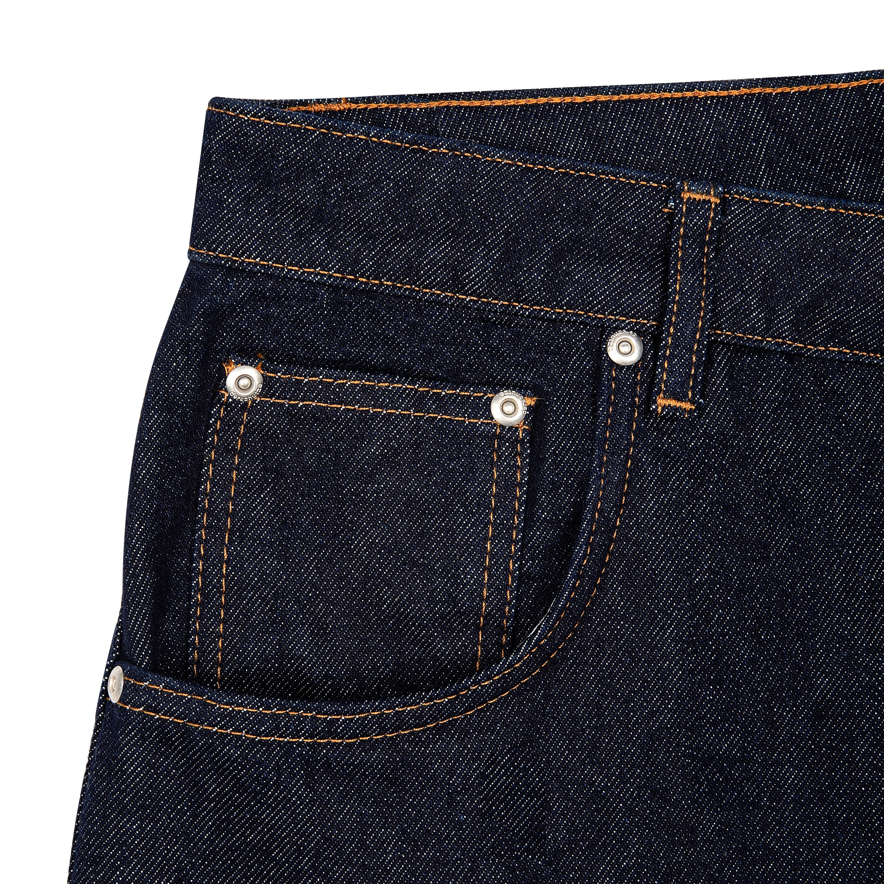 14,5oz raw denim / 100% cotton / made of different pieces / embroideries on front / embroidered leather patch / fabric may bleed or fade, wash inside out in cold water to preserve color and character / fits true to size
