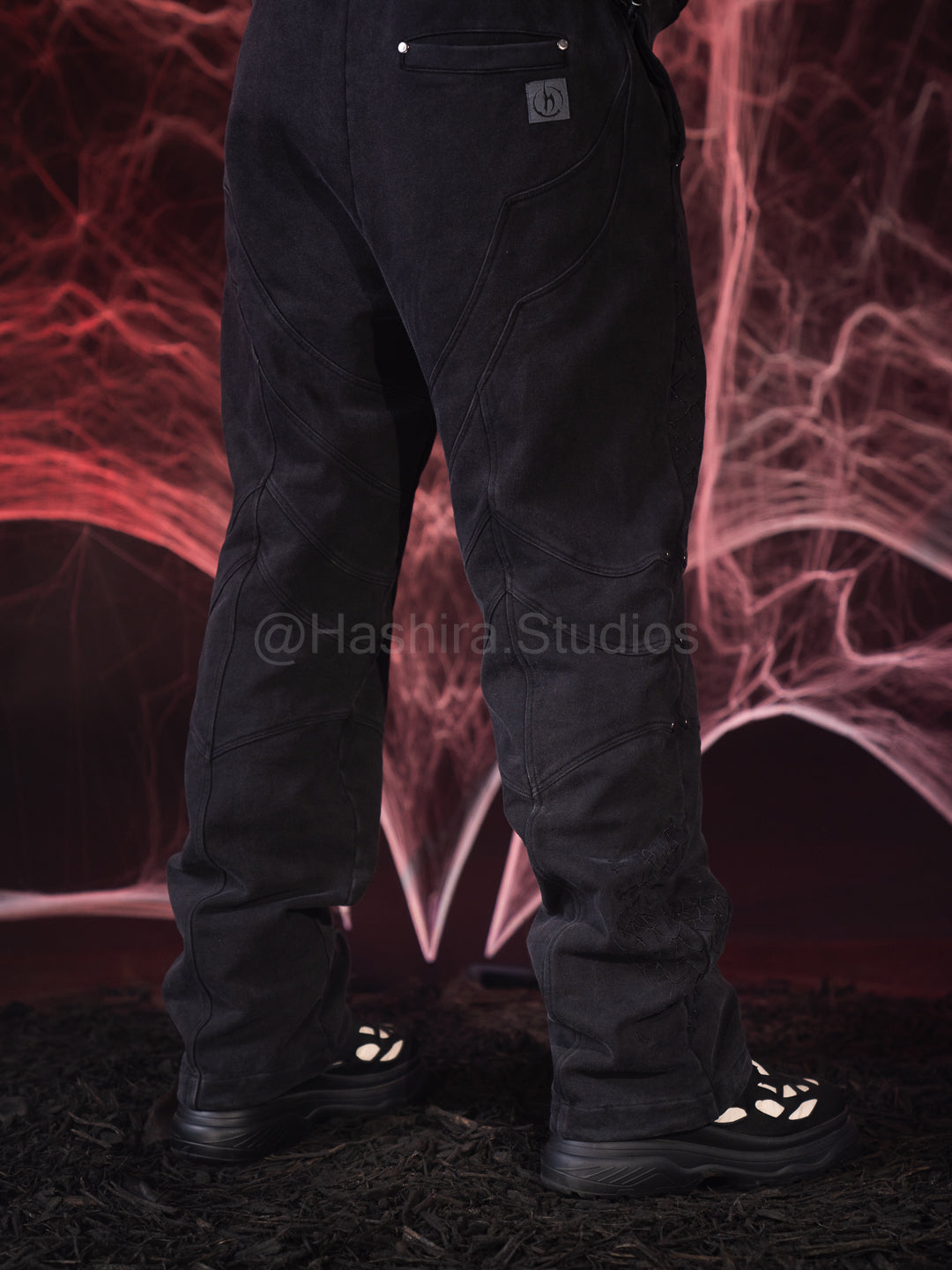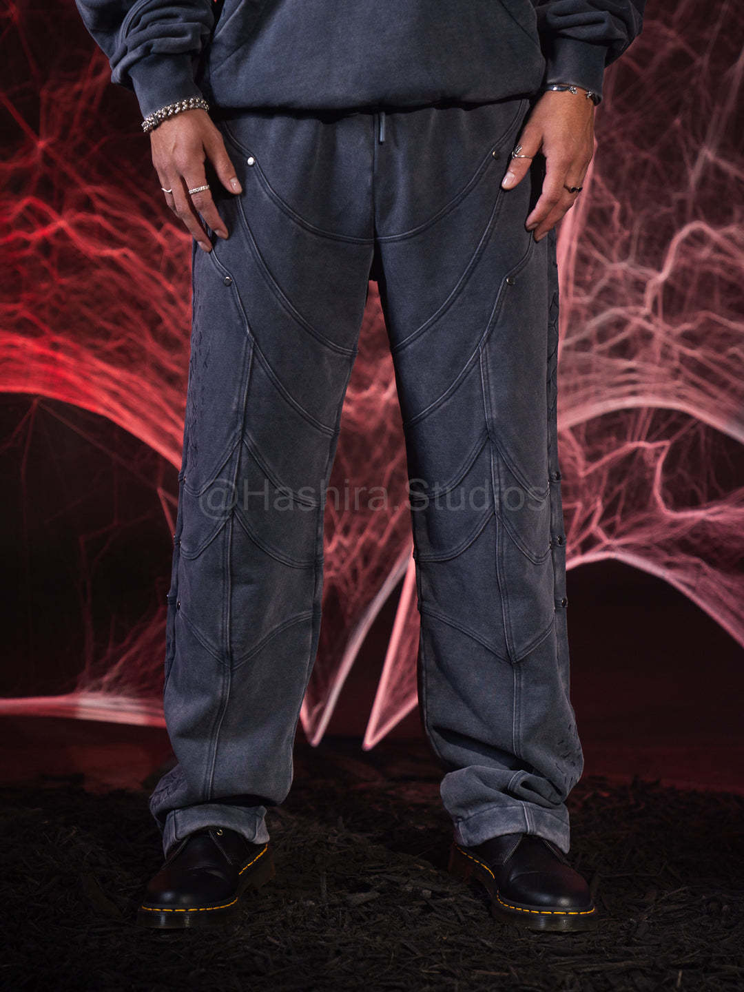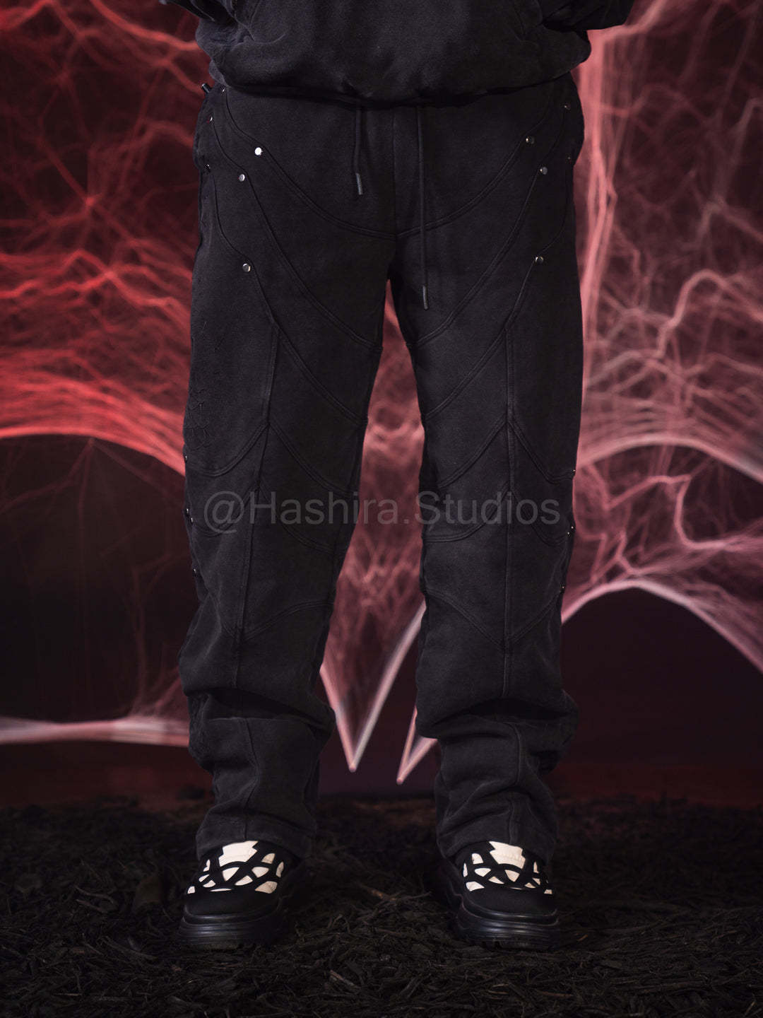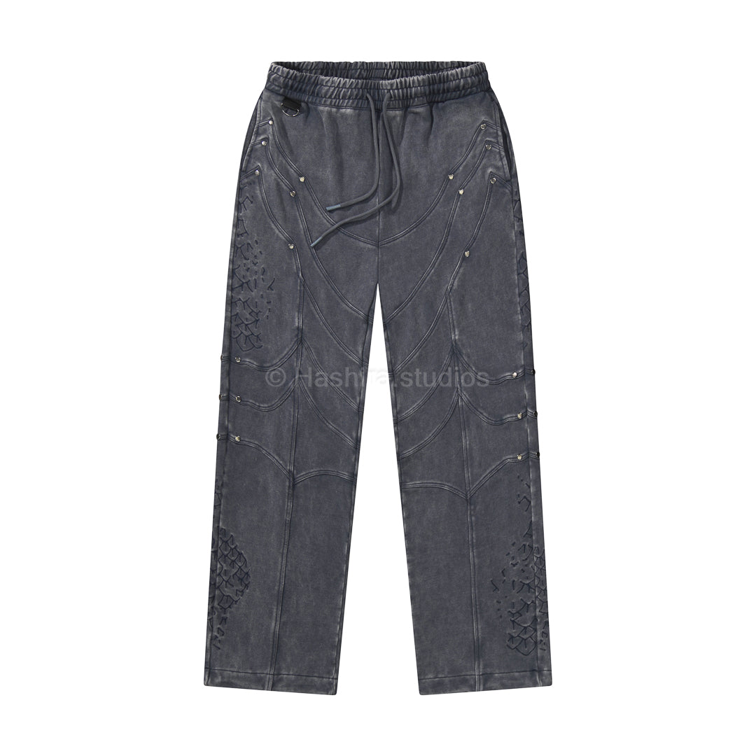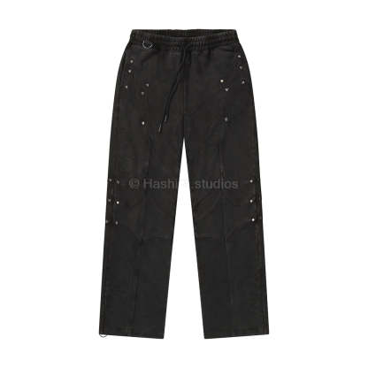 - Constructed leg armored inspired paneling + metal rivet hardware.
