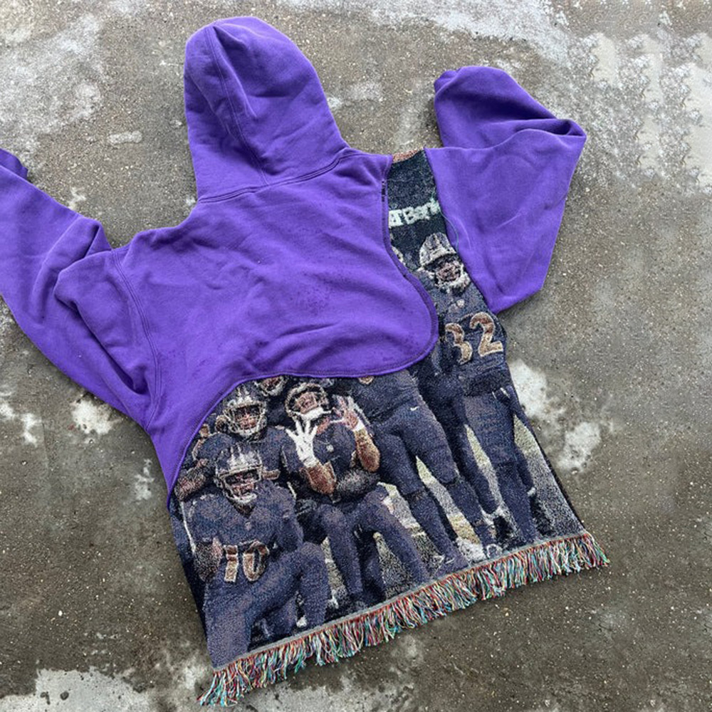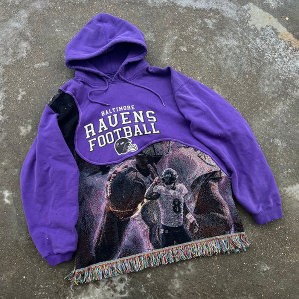 Fashion Ravens Print Long Sleeve Tassel Stitched Hoodies