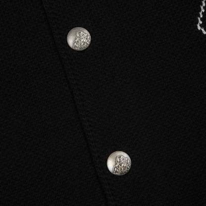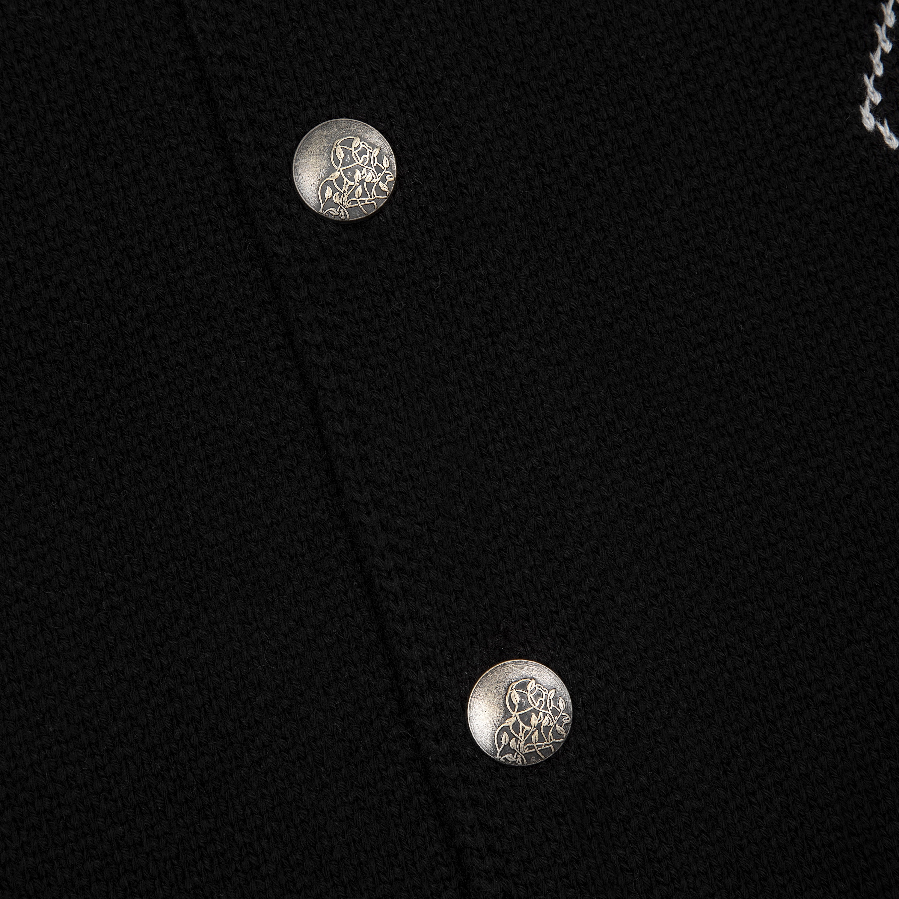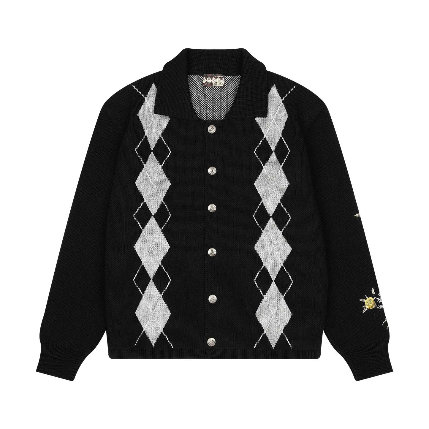 100% cotton / heavy weight knit / plaid pattern pique jacquard on front and back / embroidery on back and sleeve / custom buttons / fits true to size