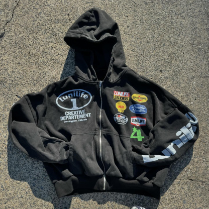 Letter Number Print Long Sleeve Zipper Hoodies