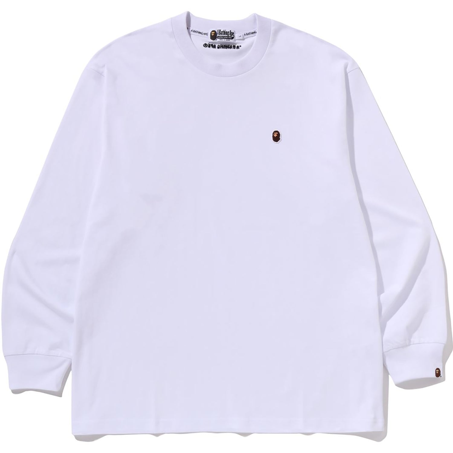 This long-sleeved tee is crafted from soft cotton jersey for all-day comfort. It includes a distinctive APE HEAD patch on the left chest and offers a relaxed cut for easy, comfortable wear.