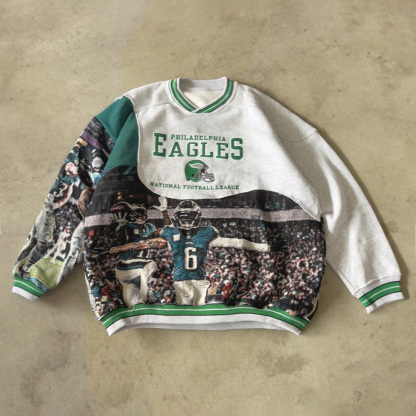 Personalized Eagles Print Long-Sleeve Spliced V-neck Sweatshirt