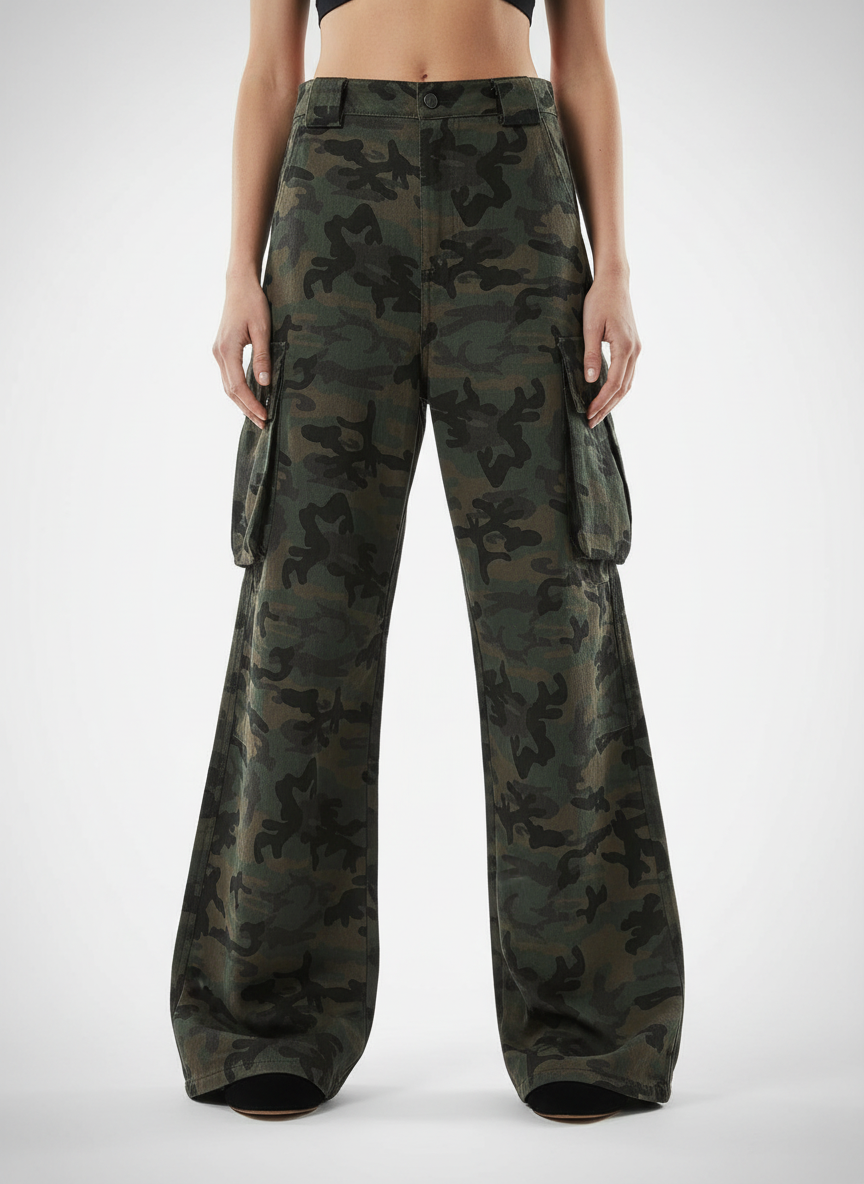 Retro Camouflage Pocket Design Workwear Casual Pants