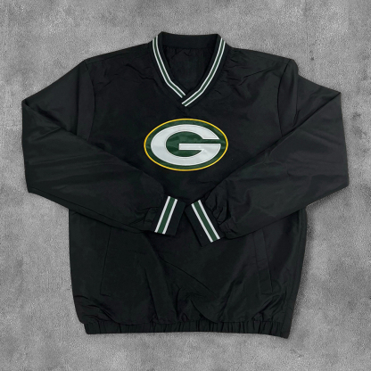 Stylish Packers Print V-neck Pocket Pullover
