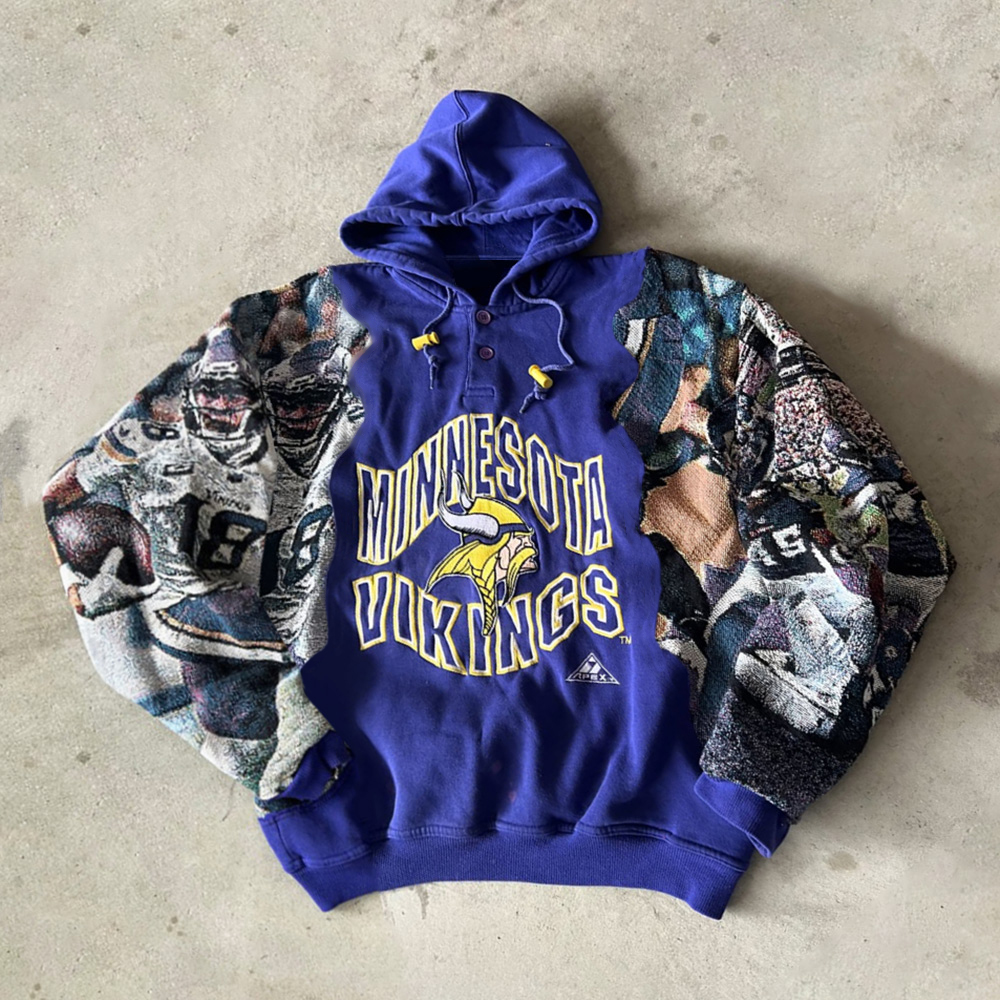 Stylish Vikings Print Long Sleeve Button Hoodies