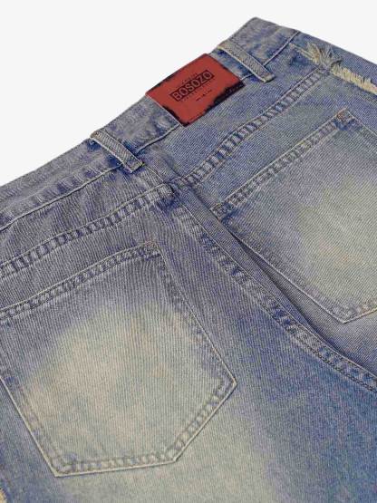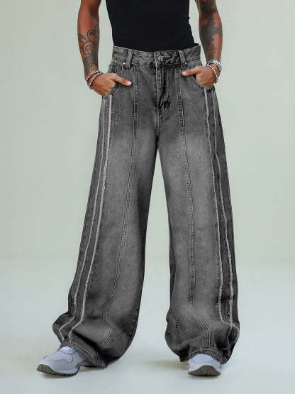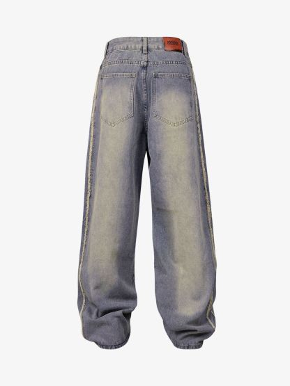 Thesupermade Washed Distressed Raw Edge Baggy Jeans - 2271