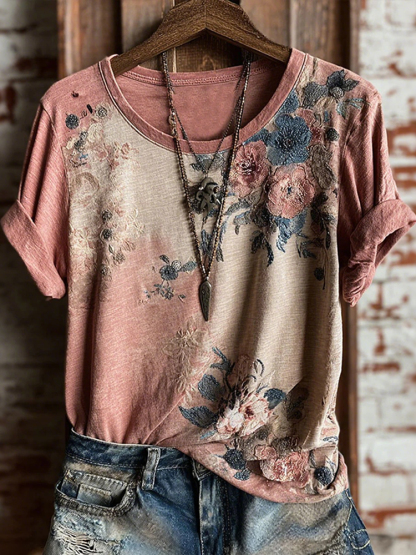Women's Retro Bohemian Floral Casual T-shirt